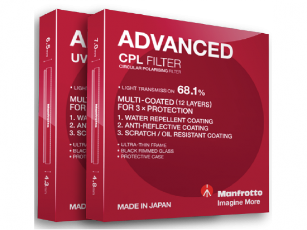 Manfrotto filters come with ultra-thin frames and the Professional/Advanced filters have black rimmed glass to minimise light refraction for maximum clarity. Up to 12 layers of coating on Manfrotto’s filters enable high levels of light transmission for clearer images. Other key features of Manfrotto filters are its water repellent, scratch/oil resistant, anti-reflective and antistatic coatings.