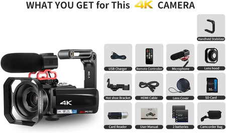 - 【As a Webcam Livestreaming Camera& Vlogging Camcorder】The camcorder has HDMI and USB interfaces,functioning as a webcam and allowing file transfer and easily sharing videos on a larger screen. The video camera 4k is perfect for vlogging,live streaming,video calls,etc. Additionally,the vlog camera includes a 32GB memory card,enabling you to start shooting upon receiving it.