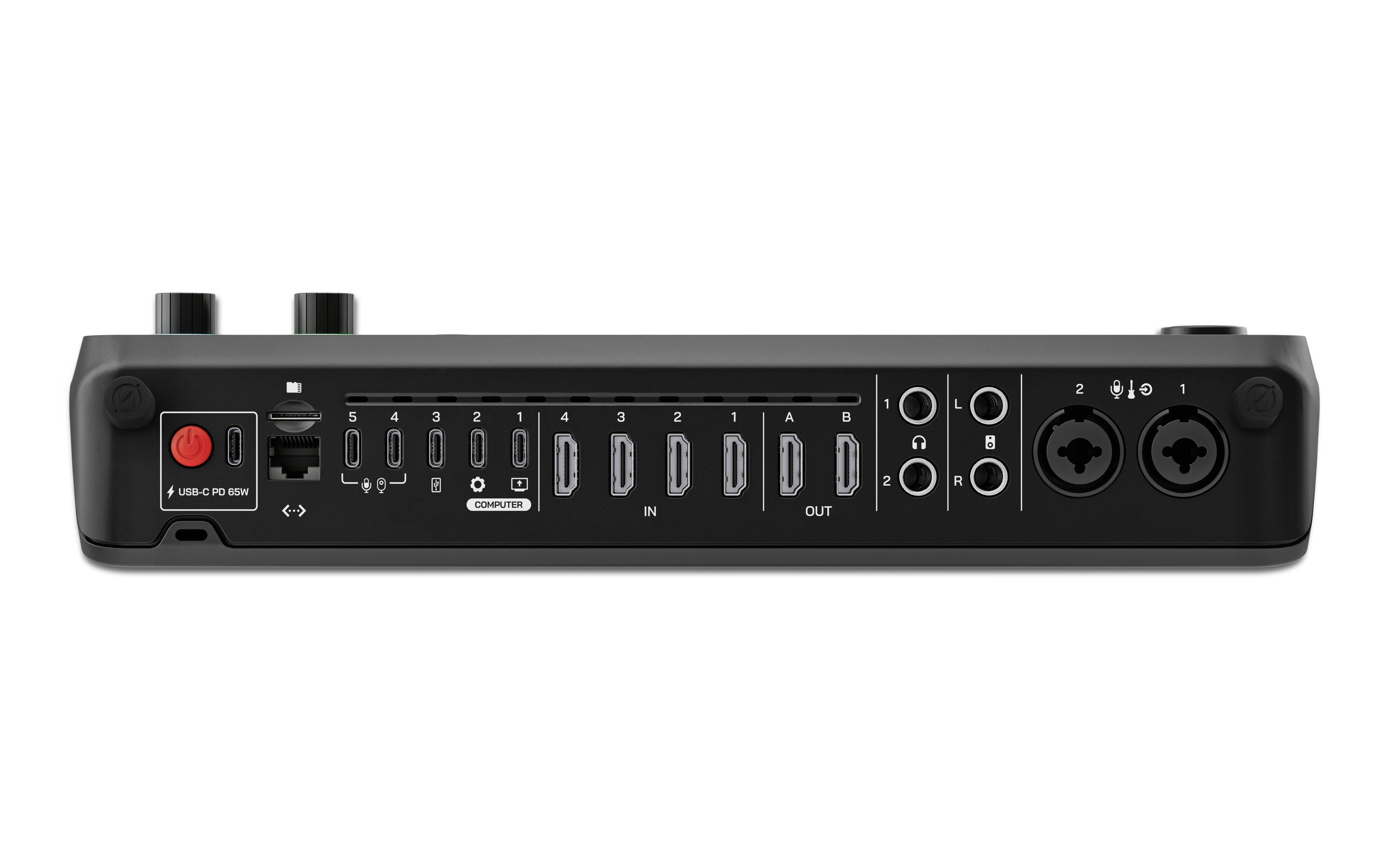 - Two flexible USB-C ports for connecting webcams and RØDE USB audio devices to use as additional video and audio sources