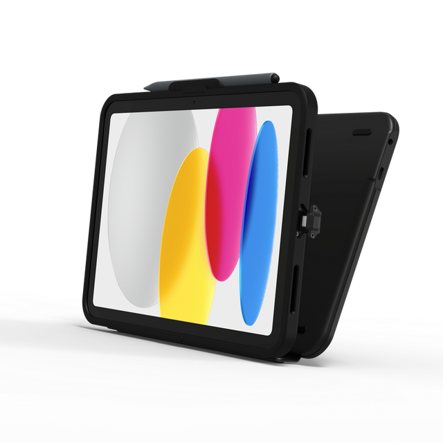 - Asset Tag Window: Your tablet’s barcode sticker or asset tag is visible through the sturdy, transparent, polycarbonate backplate.